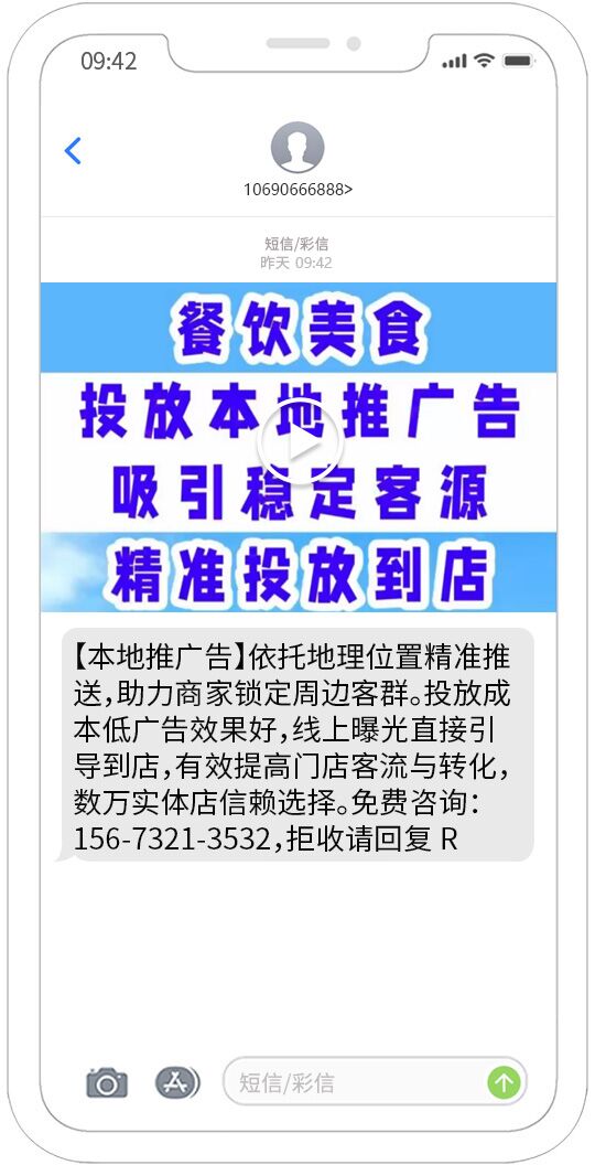 視頻短信發送能夠覆蓋移動、聯通、電信用戶,正規集團視頻短信通道,快速、可靠、穩定、形象好,能快速將您的訊息投放到用戶的手機。